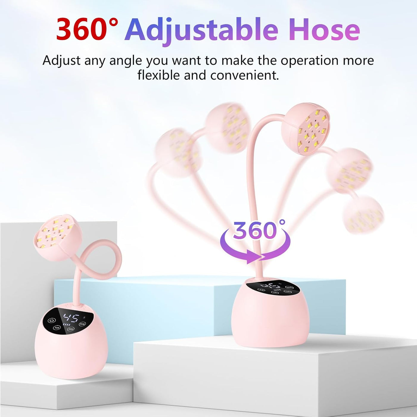 360° Degree Adjustable Direction: Makartt UV nail lamp features a flexible gooseneck, allowing you to bend and maneuver it to any angle for optimal curing. It ensures full coverage of gel nails, including hard-to-reach areas like your pinkies and thumbs, for flawless results every time.